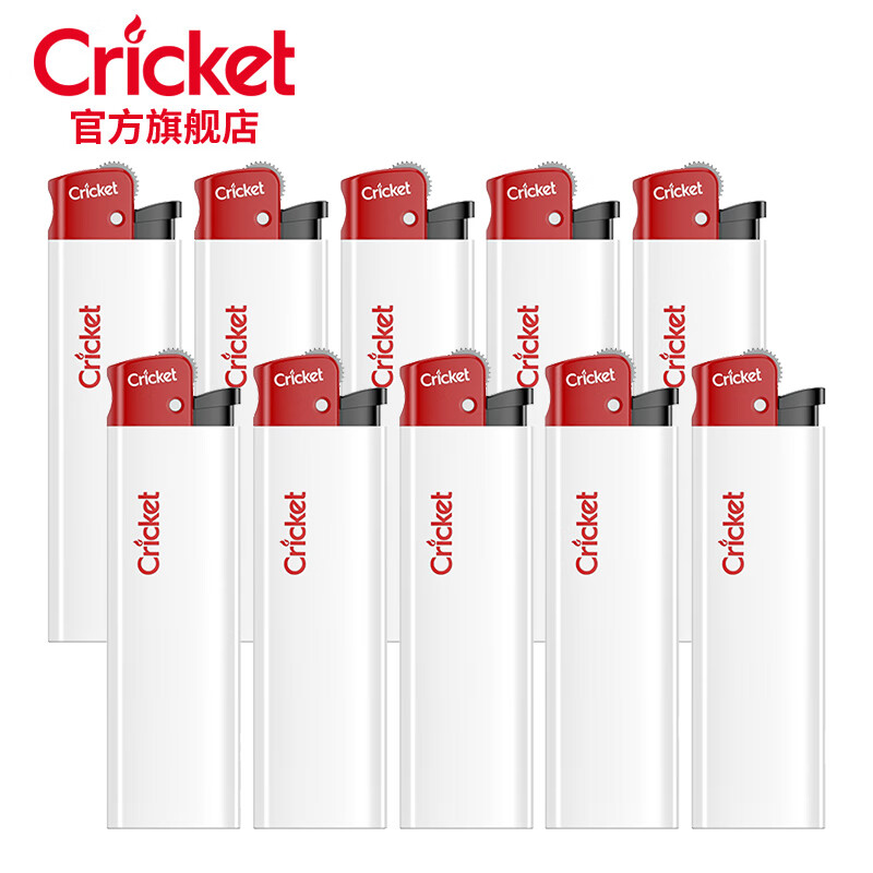 草蜢(CRICKET)原装进口打火机10支一次性火石砂轮广告定制 纯白红头