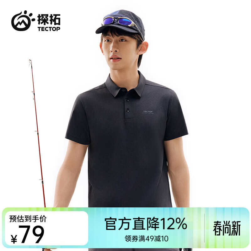 探拓(TECTOP)26新款情侣polo衫男抗菌防晒户外短袖速干翻领T恤 男款云墨黑 S