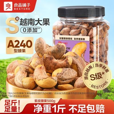 【A240型大果】良品铺子紫皮腰果500g罐装带皮腰果仁大颗粒坚果仁