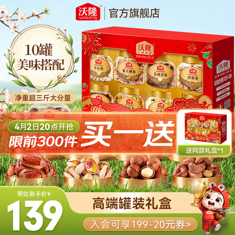 沃隆 坚果礼盒每日坚果干果炒货送礼礼盒罐装团购休闲零食大礼包 【8罐纯坚果】1.4kg锦绣华年