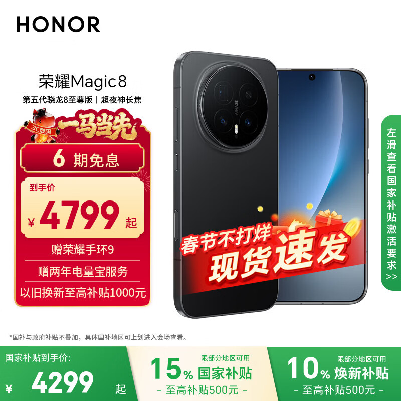 荣耀Magic8 12+512 绒黑色 第五代骁龙8至尊版 超夜神长焦 新一代青海湖电池 5G AI手机 国家补贴