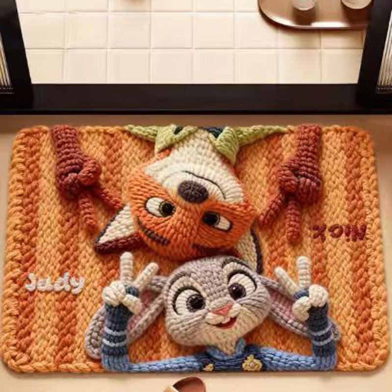 硅藻泥地垫卡通仿编织疯狂动物城朱迪尼克浴室入户门地垫厕所地毯 朱迪尼克2 40m*60cm 1件数 硅藻泥
