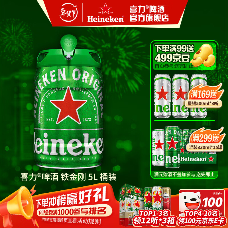 喜力啤酒 铁金刚 桶装啤酒 荷兰进口 官方正品 5L 1桶
