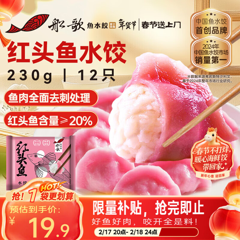 船歌鱼水饺 红头鱼水饺230g/12只早餐夜宵海鲜速冻蒸煎饺子生鲜速食年货送礼