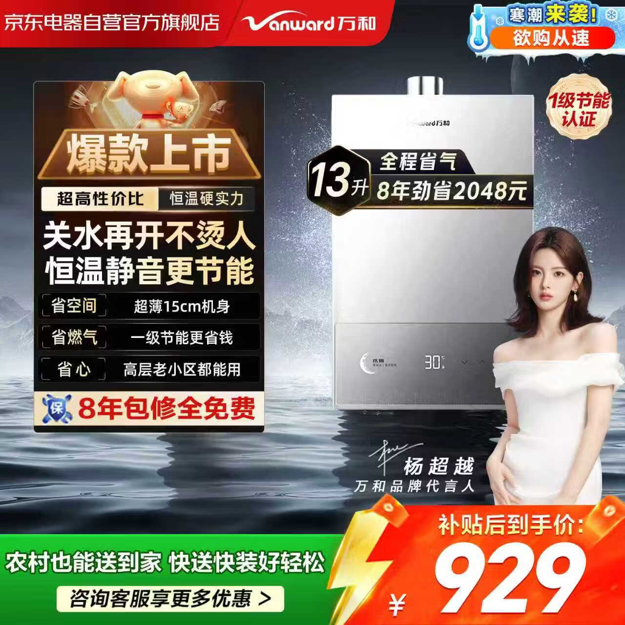 万和(Vanward)燃气热水器天然气13L静音家用直流变频双循环水伺服恒温1级节能 JSQ25-13C10