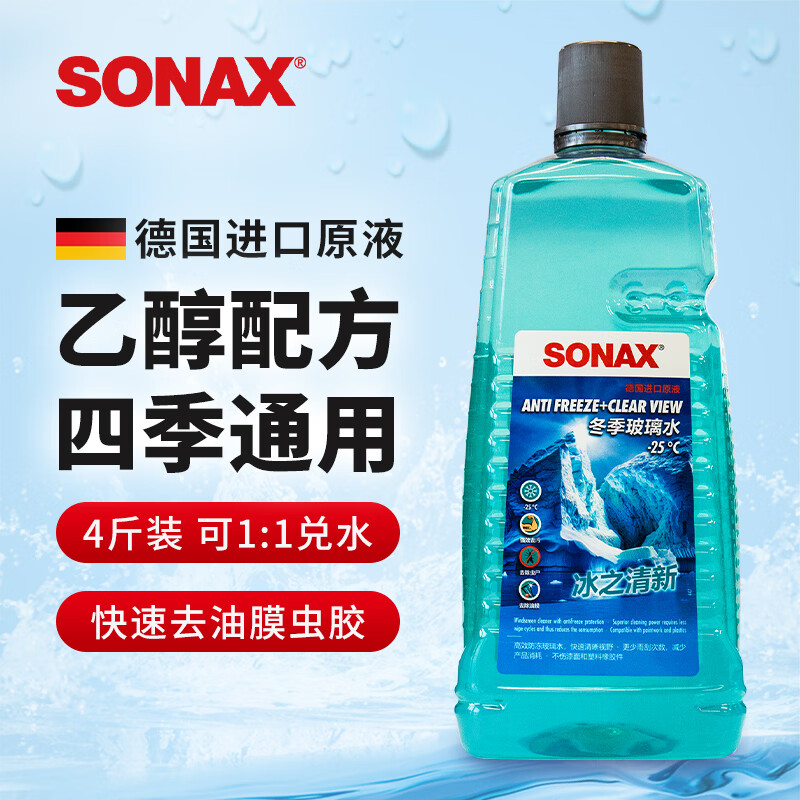 索纳克斯(SONAX)德国进口汽车玻璃水去油膜虫胶雨刷精前挡玻璃强力去污雨刮水四季 【四季通用】防冻玻璃水2L*1瓶