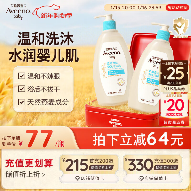 艾惟诺(Aveeno)艾维诺儿童洗发水沐浴露二合一婴儿洗发沐浴二合一0-3岁 532ml*2