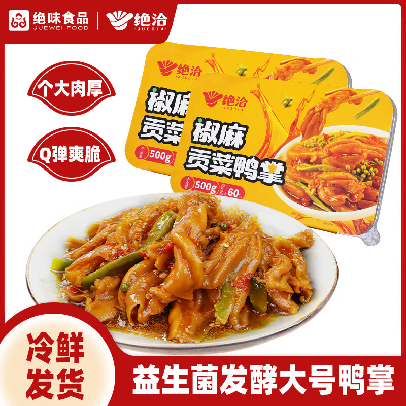 绝洽椒麻贡菜鸭掌500g1斤量贩装去骨鸭掌无骨双脆贡菜鸭掌休闲零食