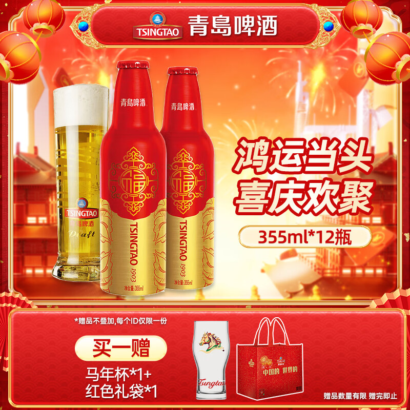 青岛啤酒(TsingTao) 鸿运当头喜庆佳节送礼祥瑞年货 355mL 12瓶 常规版