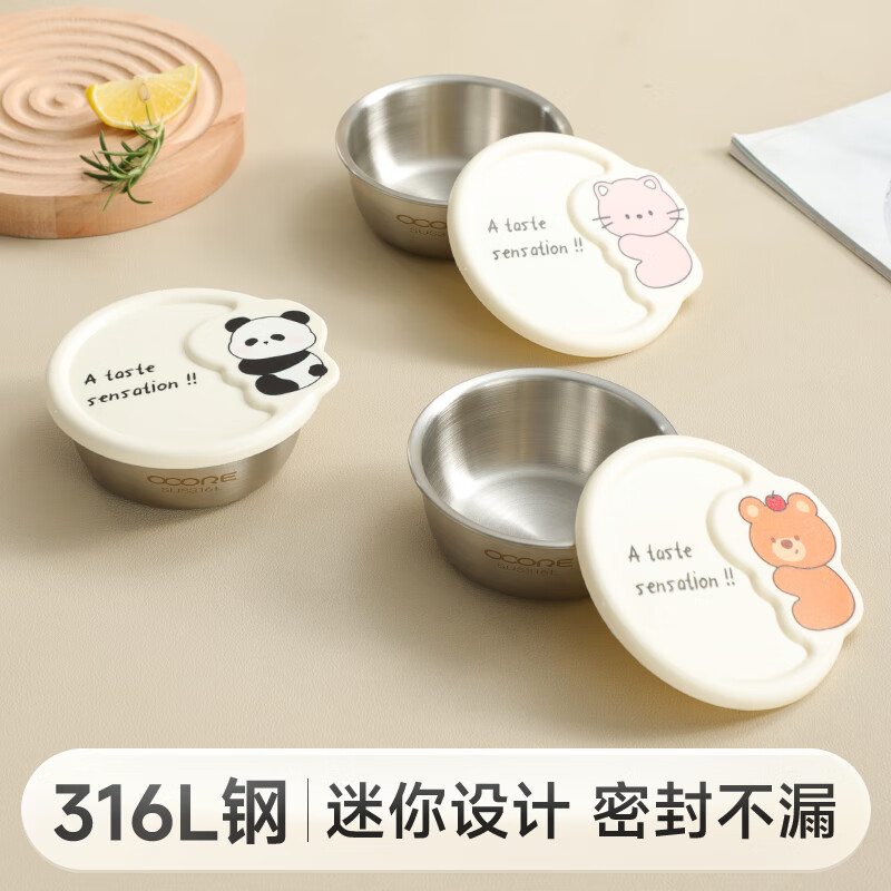 物芯质造316L不锈钢迷你小饭盒宝宝辅食碗带盖便携密封防摔耐高温保鲜盒 316L不锈钢【小熊款 带盖防漏】