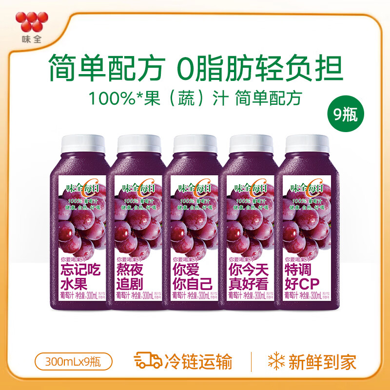 味全每日C果汁 300ml 低温冷藏饮料纯果蔬汁 葡萄汁9瓶 9瓶装