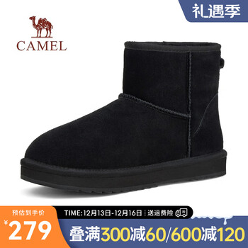 骆驼(CAMEL)男鞋冬季新款羊毛加绒棉鞋男款东北防寒保暖雪地靴男士 G13W837105 黑色男 41