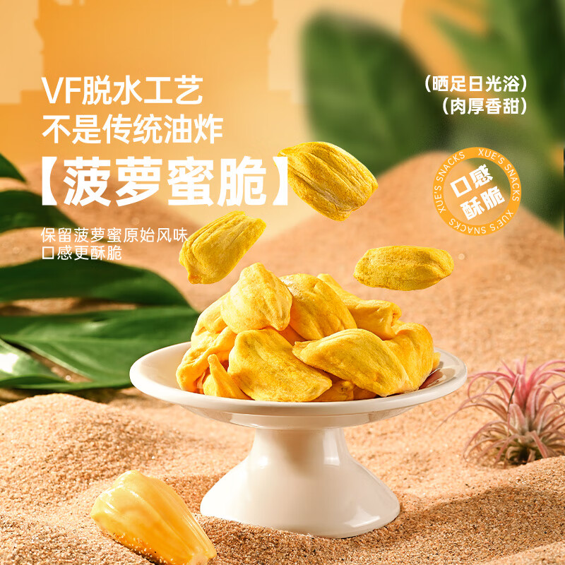 薛记炒货蔬菜脆水果脆冻干草莓脆综合果蔬混合装低温脱水零食限 购1 菠萝蜜脆60g