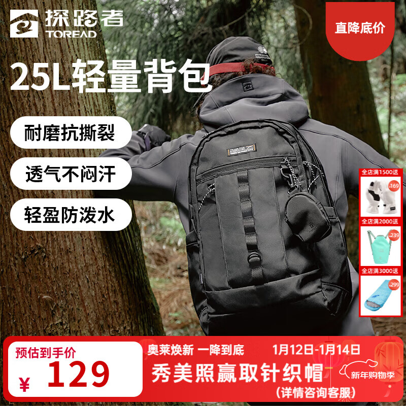 探路者(TOREAD)背包书包日常通勤防刮耐磨轻量双肩包防水透气抗撕裂旅行包男女款 黑色 均码