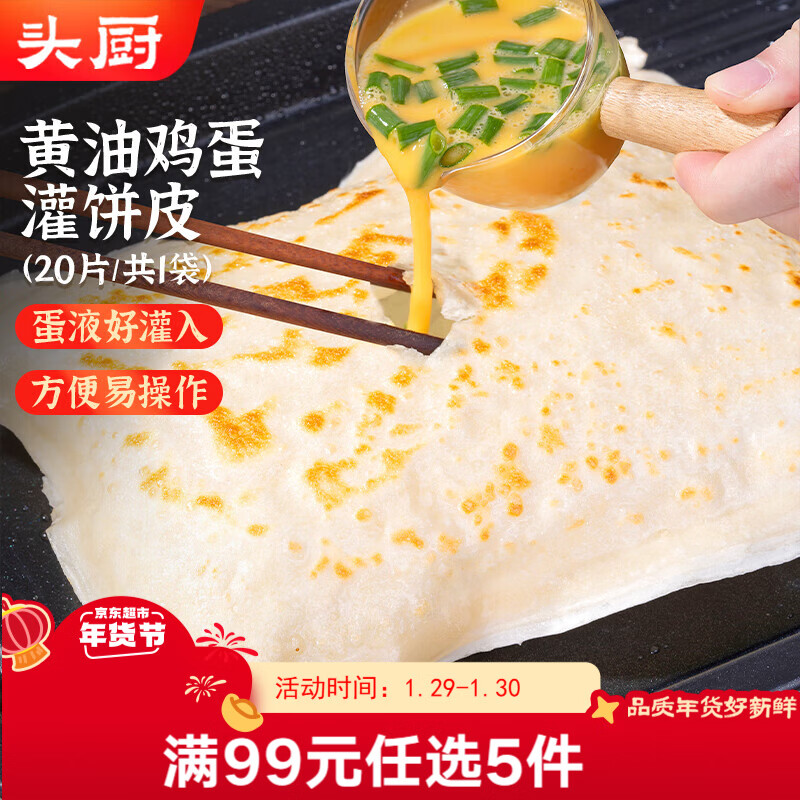 头厨黄油鸡蛋灌饼皮1.8kg共20片儿童早餐速食半成品手抓饼卷饼