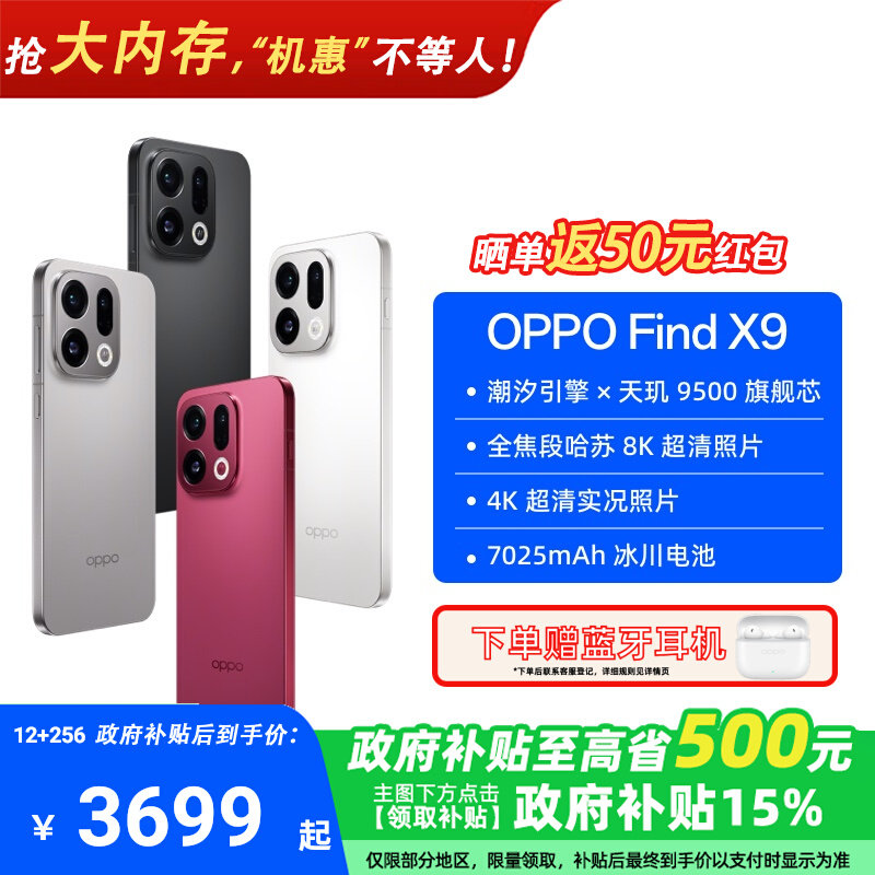 【政府补贴15%】OPPO Find X9 旗舰手机 4K 超清实况照片 7025mAh 冰川电池 丹霞色彩还原镜头