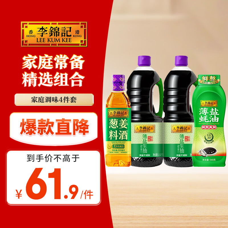家庭调味4件套 约4kg 薄盐生抽+薄盐蚝油+葱姜料酒 酱油