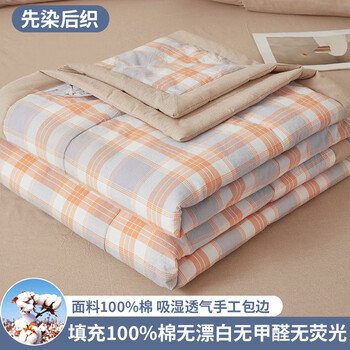 AIDLIA类100%新疆棉夏凉被空调被印花可水洗机洗单双人薄被子被芯 里外全棉-桔灰格 150x200cm单夏被