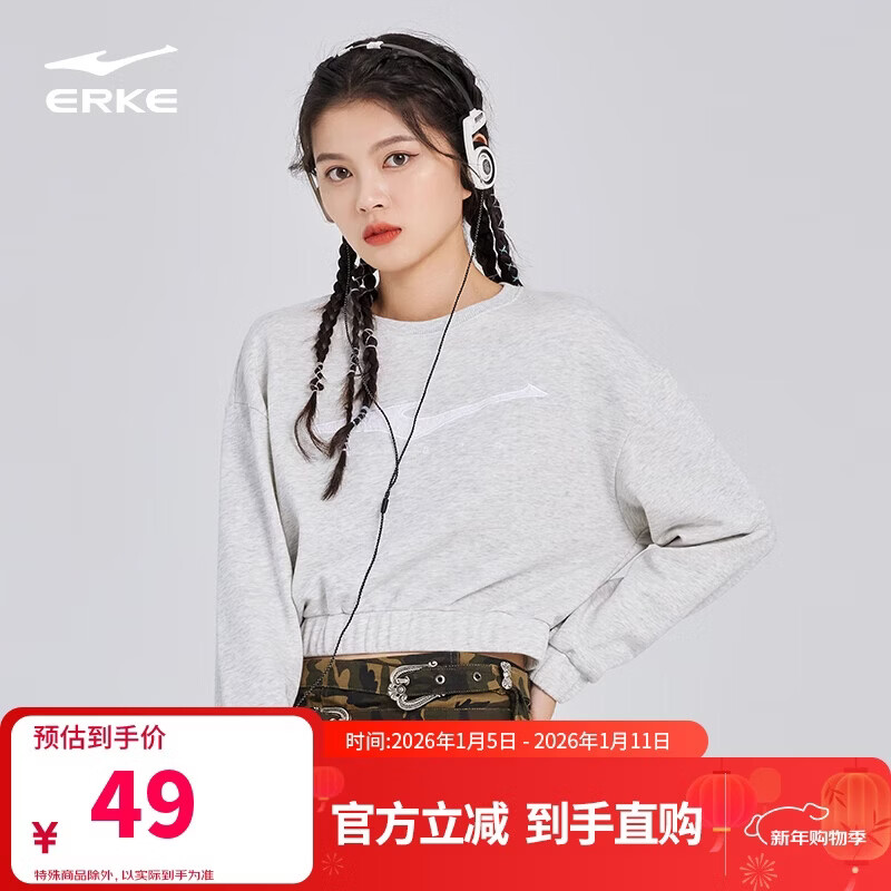 鸿星尔克卫衣女运动秋季休闲服舒适圆领女士套头上衣 52222302130