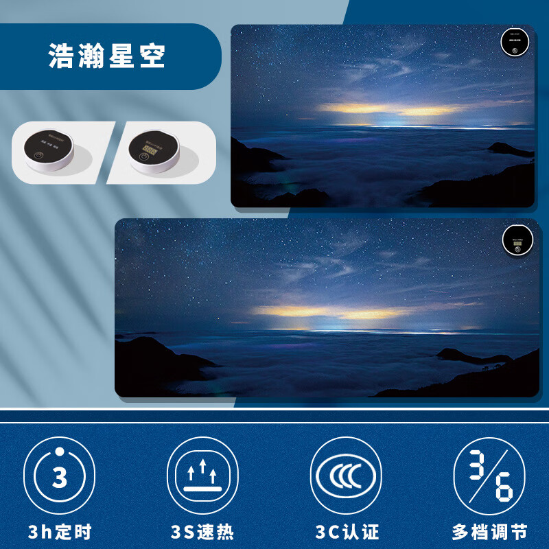 溥畔加热鼠标垫电脑桌面暖桌垫写字办公室自动定时发热冬季 浩瀚星空 3档智能控温【60*36CM】