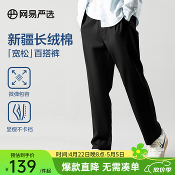 网易严选时尚百搭宽松舒适休闲裤裤子夏季男高弹不紧绷小锥版型显瘦 西裤腰*黑镍色 常规 L