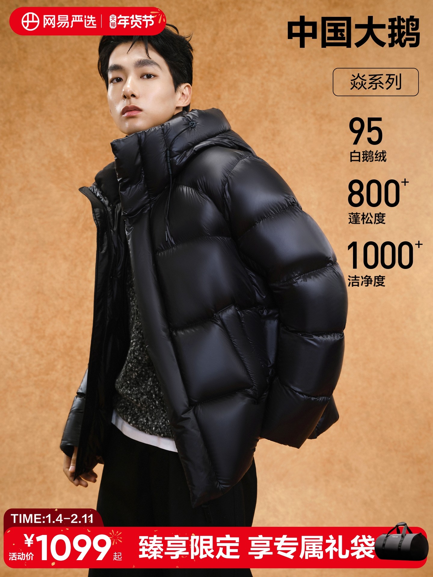 网易严选中国大鹅羽绒服焱系列95鹅绒服男士连帽长款防水厚羽绒女