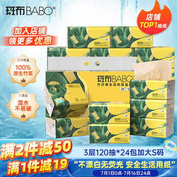 斑布抽纸 3层120抽*24包 加大S码 湿水不易破 纸巾 餐巾纸 卫生纸