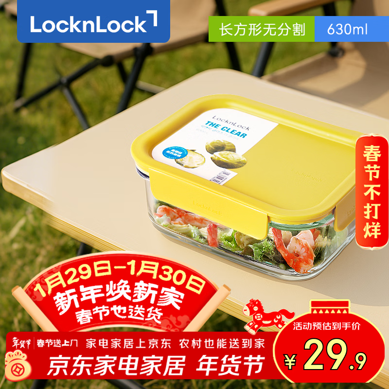 乐扣乐扣(LOCK&LOCK)耐热玻璃饭盒微波炉保鲜盒密封便当盒LNG524Y_630ml