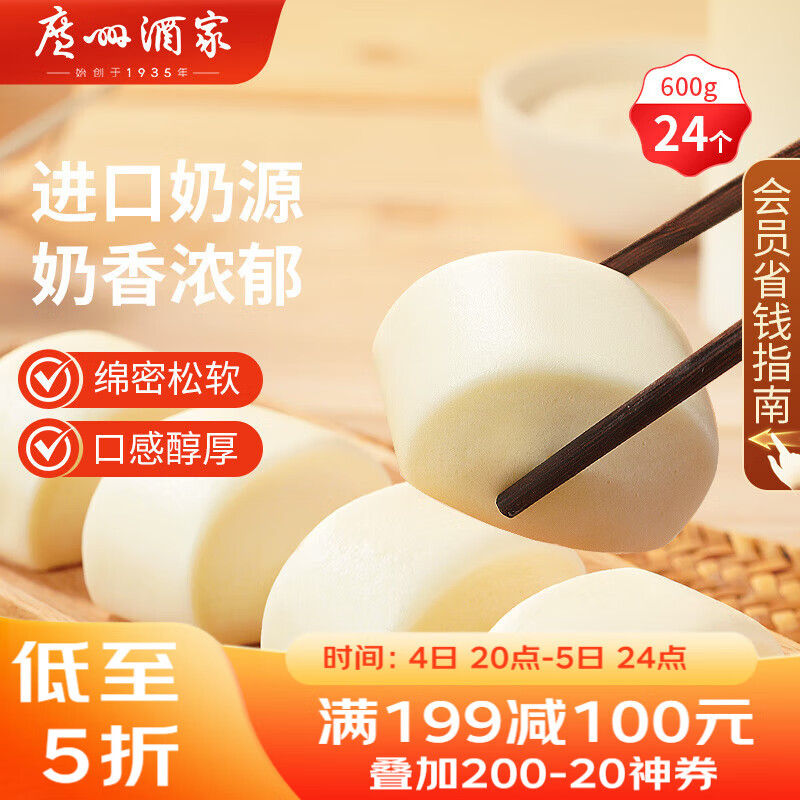 广州酒家 牛奶馒头600g 24个 儿童早餐 半成品 奶香馒头 食品速食美食