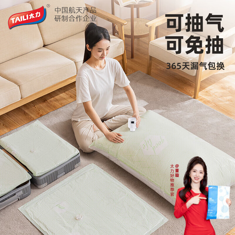 太力真空压缩袋免抽气真空收纳袋衣服大号衣物棉被加厚立体整理袋 【盲盒】110*70cm 6个装+1电泵