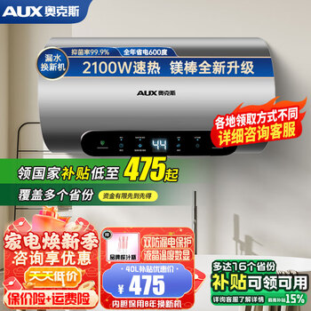 奥克斯(AUX)储水式电热水器多档调温速热双重防护节能二级能效2100W金属壳出租屋房家用以旧换新政府国家补贴 40L 电脑控制 触控调温 三极漏保 上门安装