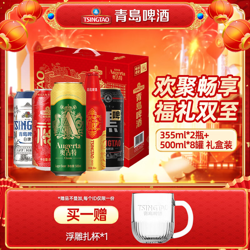 青岛啤酒(TsingTao)全家福啤酒礼盒佳节送礼5款精选啤酒分享喜庆 355ml*2瓶+ 500mL 8罐 礼盒装