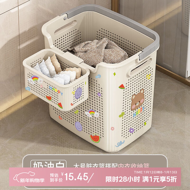 稻草熊(DOCOXO)脏衣篮收纳神器收纳筐衣服提篮置物筐家用好物脏衣筐浴室洗澡篮 奶油白小号+大号