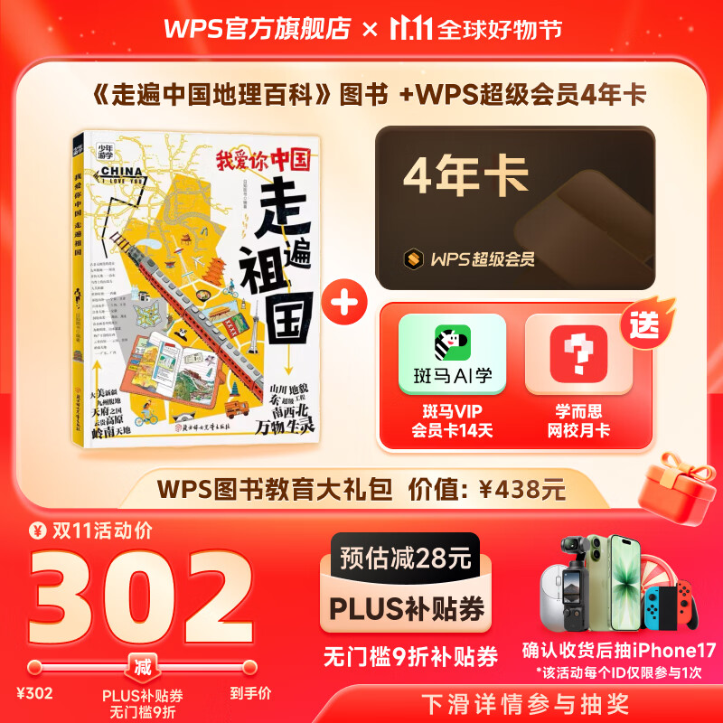 WPS超级会员4年+《走遍祖国地理百科》图书excel表格PDF自由转换编辑思维导图简历PPT资源模板外文翻译 WPS超级会员4年+《走遍祖国地理百科》图书