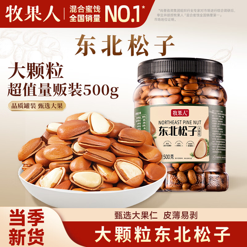 牧果人东北松子大颗粒500g/罐 红松子每日坚果炒货休闲零食当季新货 东北红松子大颗粒500g/罐