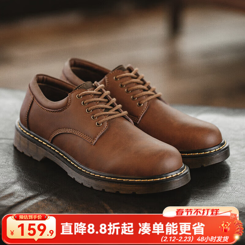 马登男鞋 休闲皮鞋潮流百搭大头潮鞋子男英伦风低帮工装鞋 蜜蜡色 41