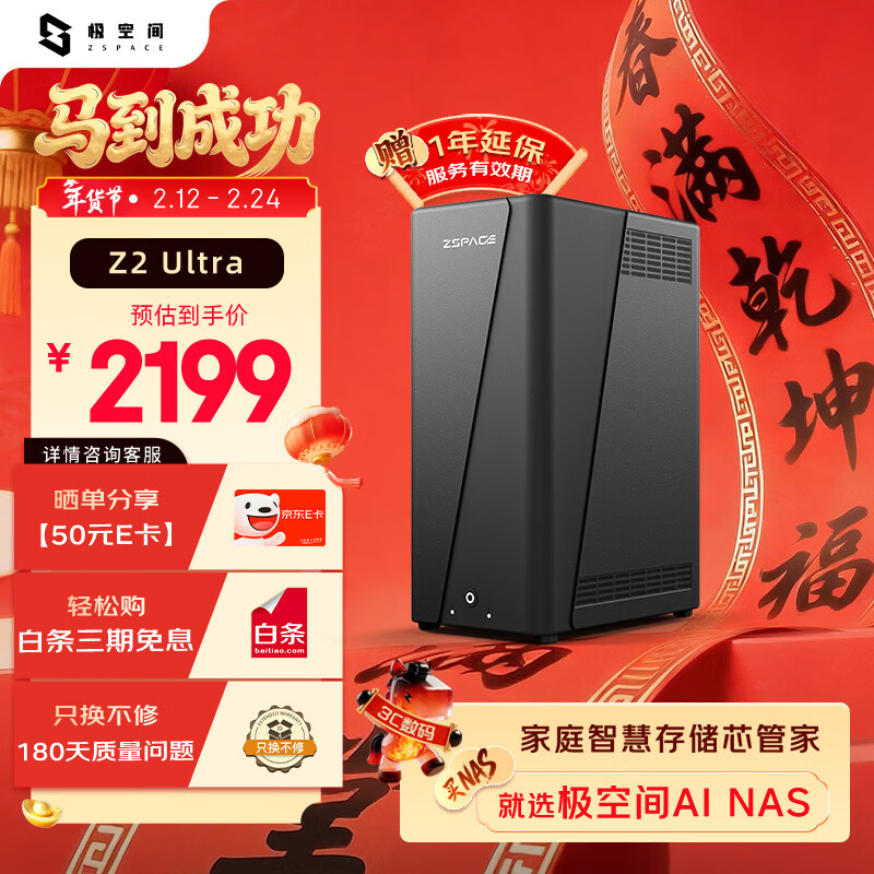 极空间私有云Z2Ultra四核双盘位NAS网络存储智能AI手机平板扩容娱乐影音企业办公主机家庭云服务器