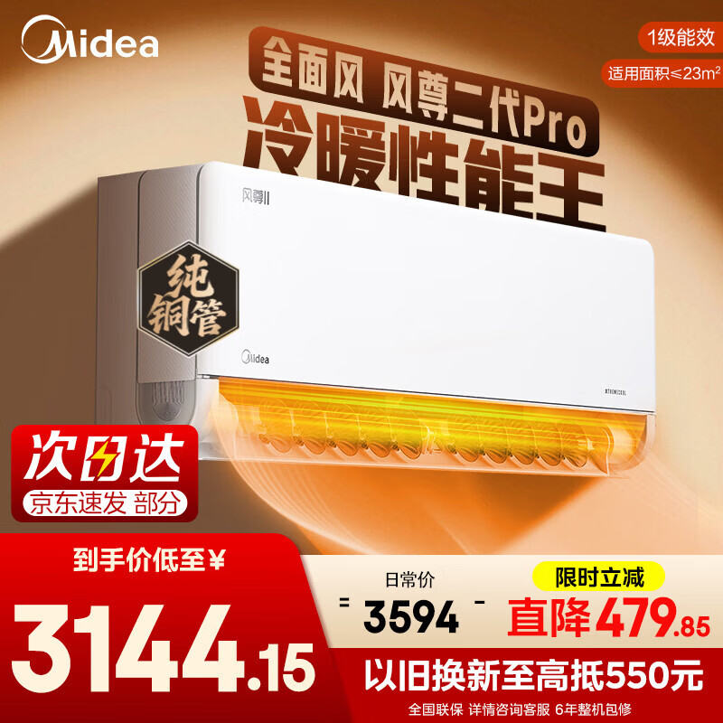 美的(Midea)空调挂机 全新风尊二代新一级能效 变频冷暖壁挂式空调 以旧换新国家补贴20% 四代自清洁 风尊二代Pro 一级能效 大1.5匹