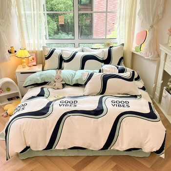 AIDLI100%全棉磨毛四件套印花单双人四件套 妙染 200*230cm四件套(1.5/1.8m床)