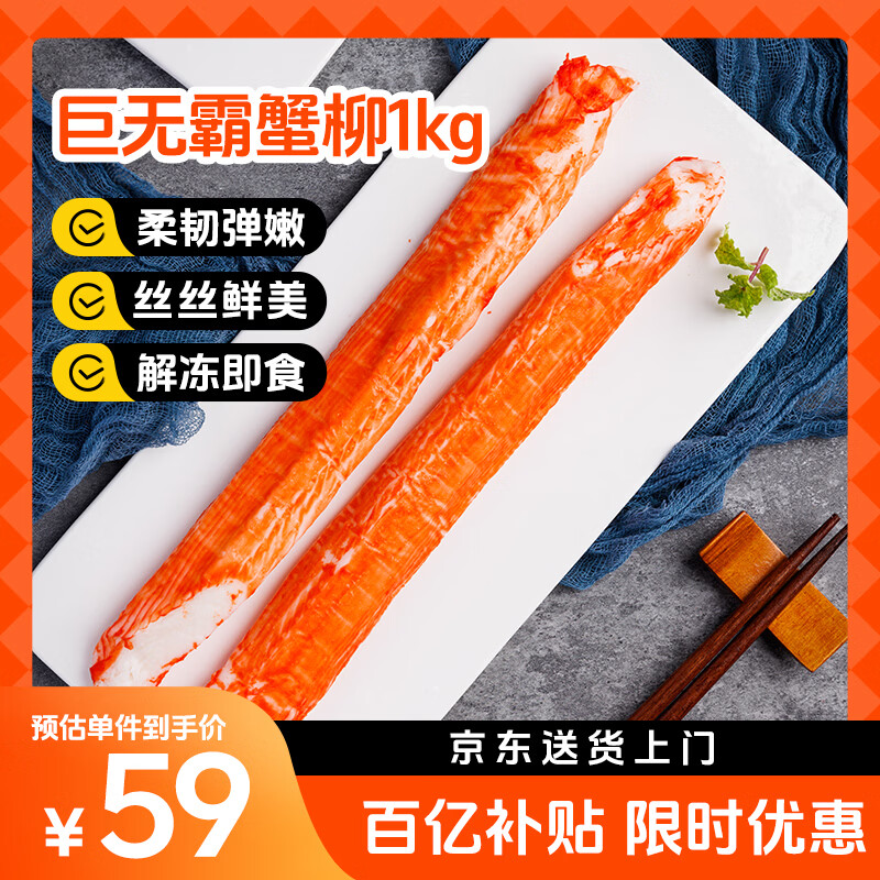 美加佳即食巨无霸蟹柳净重2斤 鱼糜含量80% 量贩装即食蟹柳 日料刺身