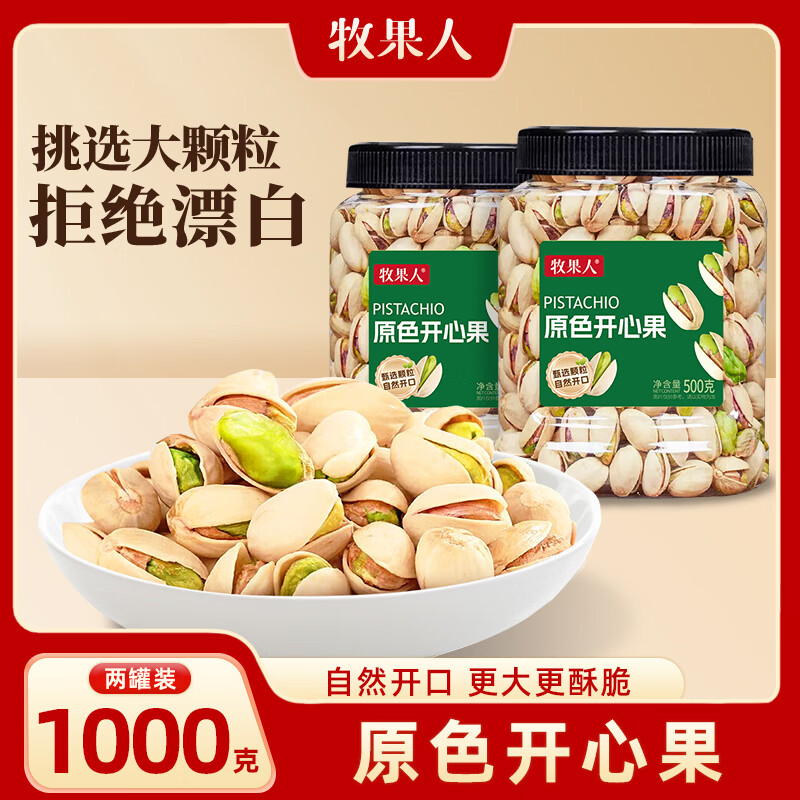 牧果人开心果500g 大颗粒无漂白罐装大果坚果炒货干年货休闲零食礼送礼 开心果500g*2