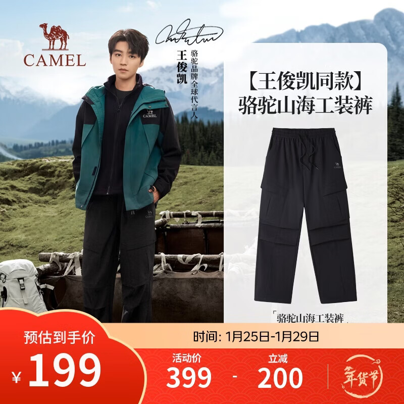 骆驼【王俊凯同款】山海伞兵裤秋季新款防泼水工装裤男M15CAWI073