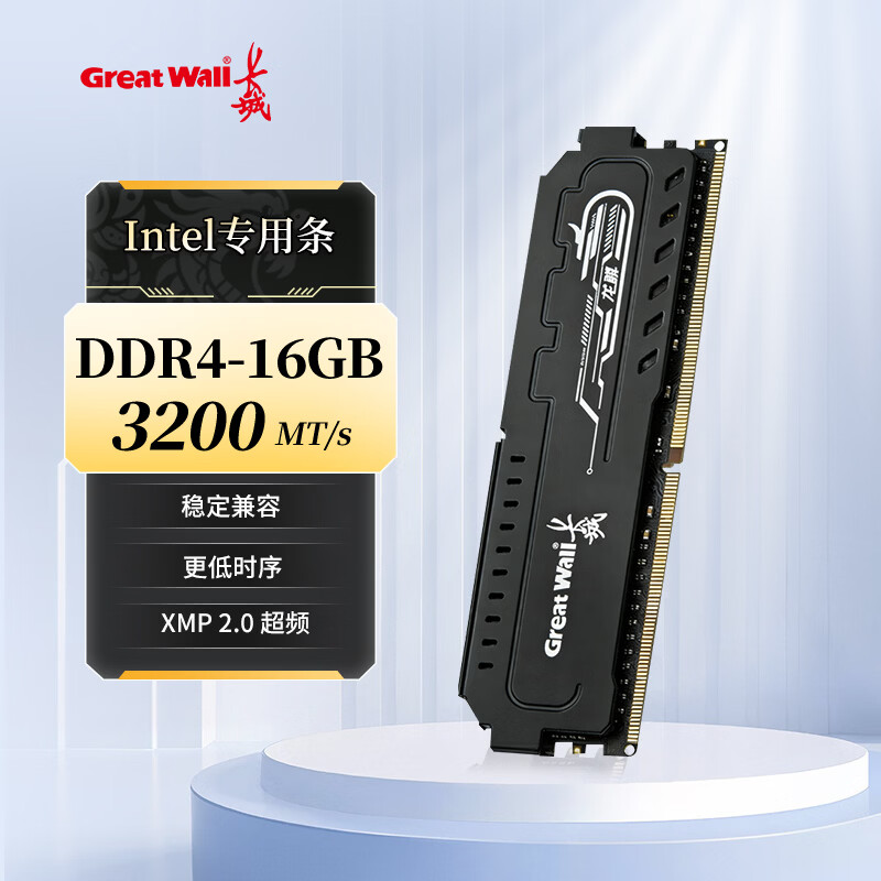 长城(Great Wall)16GB DDR4 3200频率 台式机内存条马甲条 Intel专用条龙鳞黑金系列