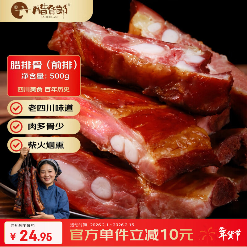 腊货郎(LAHUOLANG)四川特产腊排骨前排500g 年货腊味腊肉 春节农家烟熏风干咸排骨