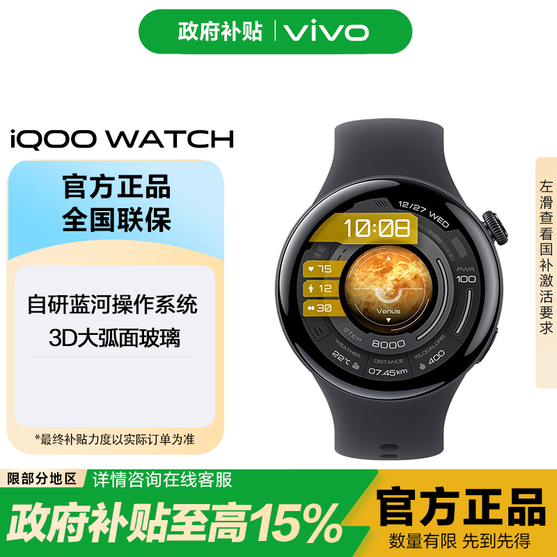 iQOO WATCH 【国家补贴】智能手表新年年会礼物eSIM 健康监测运动超长续航 NFC血氧心率监测手表vivo eSIM 浩宇黑 软胶