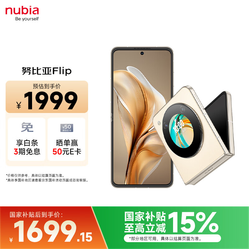 努比亚(nubia)国民小折叠Flip 12GB+256GB 奶茶色 高通骁龙芯片 5000万后置主摄 5G手机 国家补贴