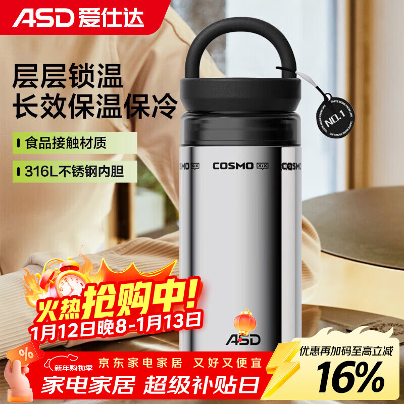 爱仕达(ASD)户外运动便携保温杯家用办公学生水杯长效保温400ml RWS40B18WG