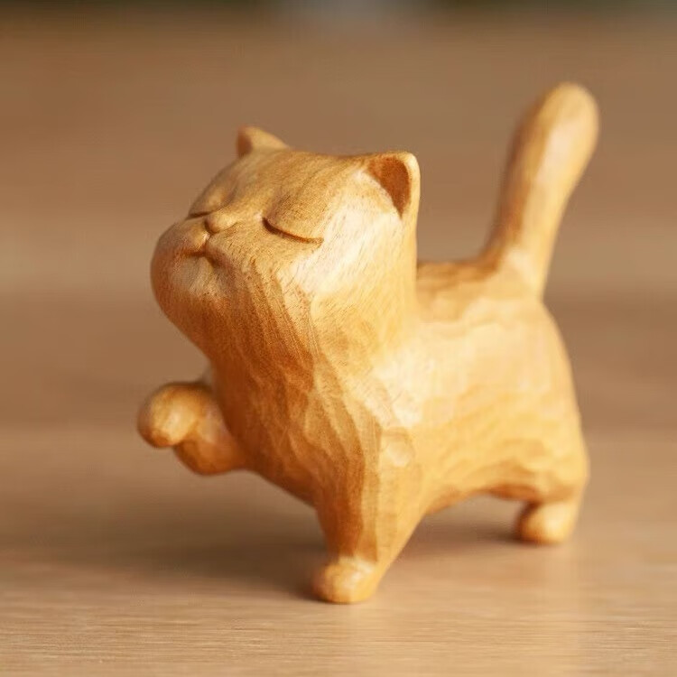 木易Mui木雕招财小猫创意艺术家居礼物茶室刘亦菲李现有风的地方同款 黄金檀木扶朕猫 中号约5cm