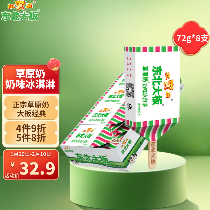 东北大板草原奶冰淇淋 72g*8支 盒装 冷饮 冰激凌 东北奶糕 雪糕批发