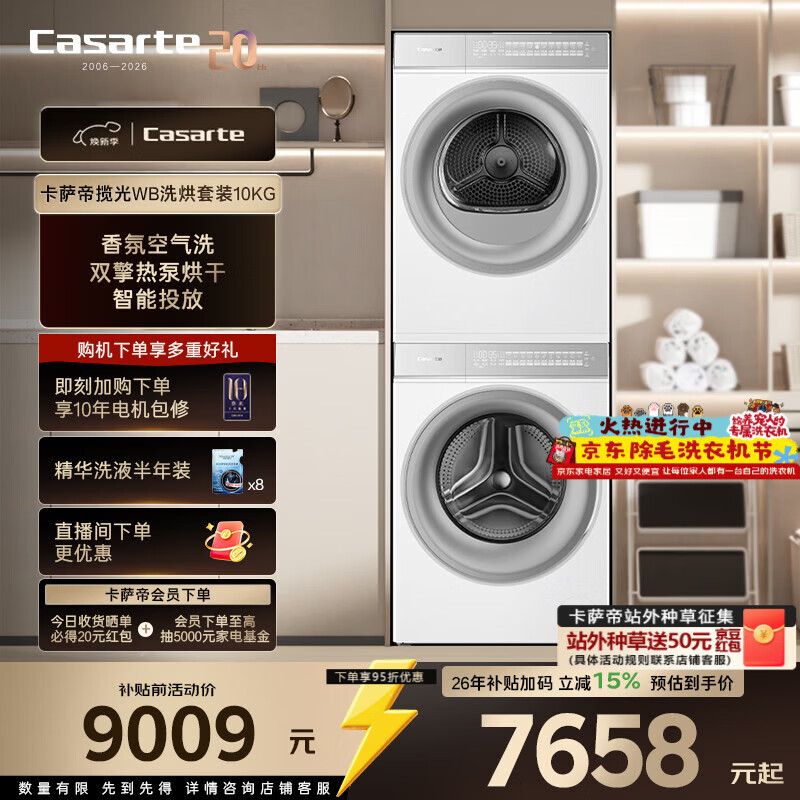 卡萨帝(Casarte)揽光WB洗烘套装 10KG滚筒洗衣机全自动+10KG双擎热泵烘干机 家电换新补贴 10LWB+10FWB 【高端款】揽光WB 洗烘套装 10kg